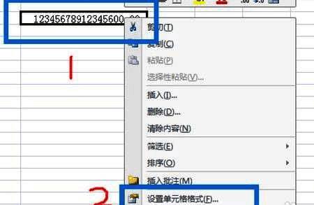 1、右击显示e+的单元格,选择选项列表中的"设置单元格格式"。