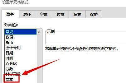 2、在打开的窗口界面中,点击上方中的"数字"选项卡,然后选择"文本"。