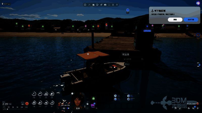 想要出海,玩家需要先前往码头,在码头的建筑处租赁船只,可自由选择不同型号。租赁成功后,只要在当天未归还,就能随时再次登船。船只的操控方式为 WASD,同时船上配备工具箱,可用于钓鱼。在航行过程中,玩家可在非码头区域点击下船,而回到码头边时,则能正常选择离船,流程十分便捷。