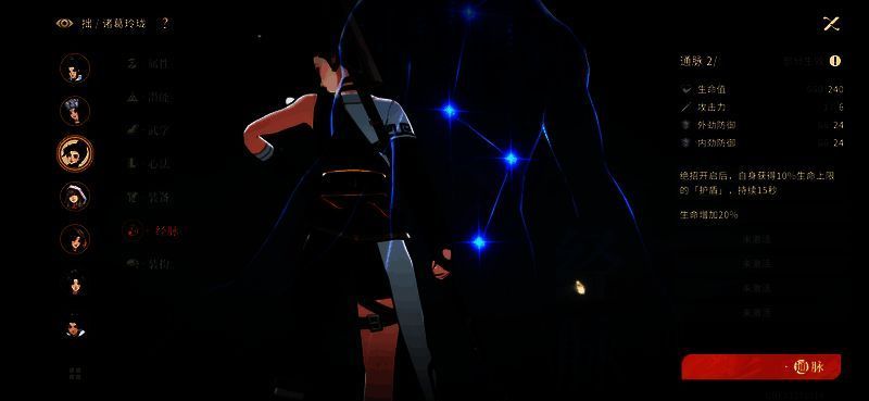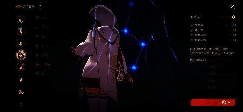 经脉点绝招加护盾,加攻击力。