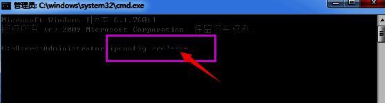 4、最后输入"ipconfig/release",回车执行命令,随后将电脑重新启动即可。
