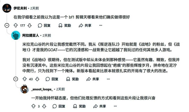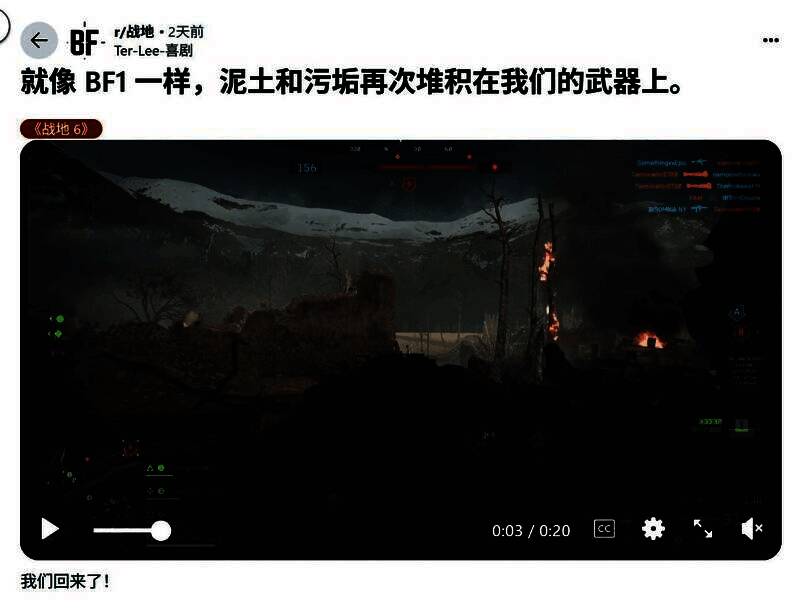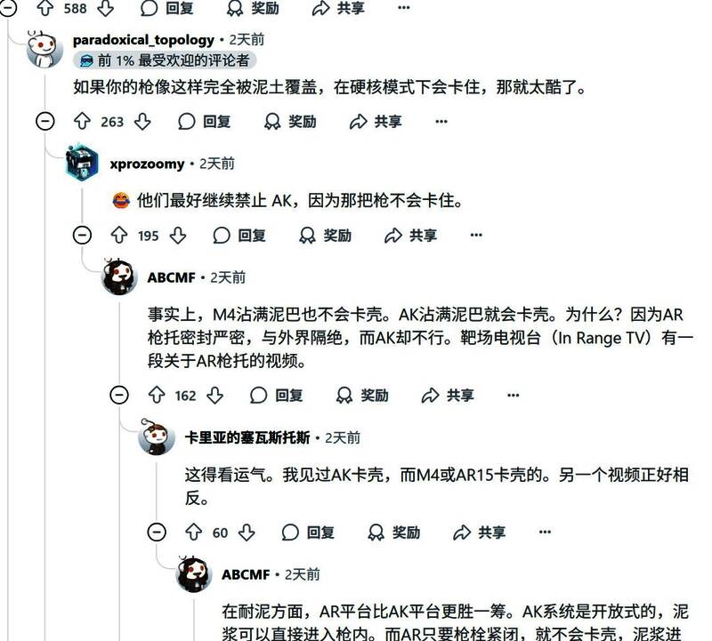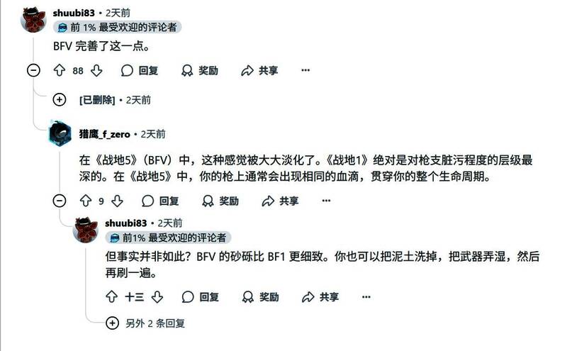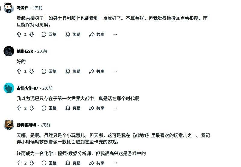 一些玩家甚至建议,开发者可以更进一步:当枪械完全被泥土覆盖时应出现卡壳效果。帖子评论区中,作者还确认在战场上如果玩家中弹,武器上会出现血迹飞溅的效果。