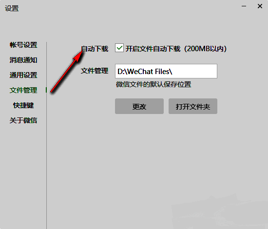 微信电脑版如何开启文件自动下载功能