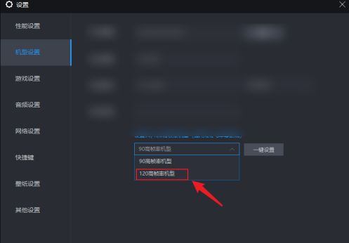 3、然后找到右侧中的"设置90/120高帧率机型"一栏,点击选项框的下拉按钮。