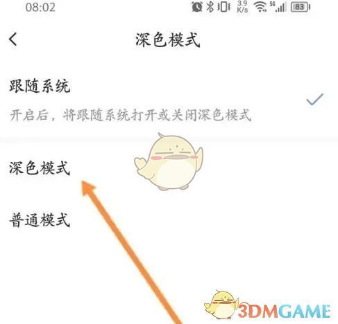 2、点击上面的深色模式选项。
