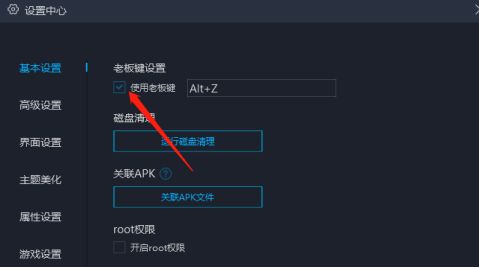 3、在打开的窗口界面中,点击左侧栏中的"基本设置"选项,然后找到右侧中的"使用老板键",将其小方框勾选上,最后在输入框输入设置的老板键组合键就可以了。
