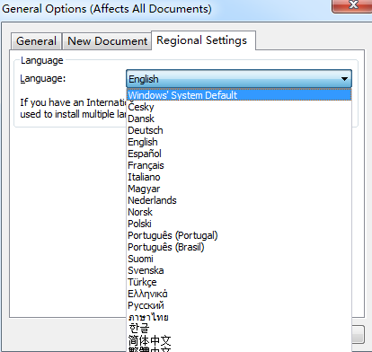 2、在打开的窗口界面中,点击上方中的"Regional Settings"选项卡,然后点击"Language"选项卡的下拉按钮,最后选择选项列表中的"简体中文"就可以了。