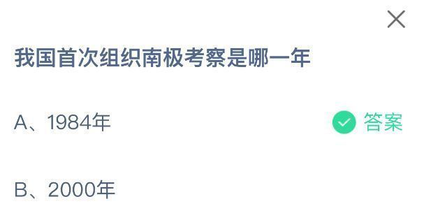 我国首次组织南极考察是哪一年?这是9月10日蚂蚁庄园的小鸡课堂题目,可别错过啦! 支付宝里这个小鸡答题特别受欢迎,只要用饲料喂饱小鸡,就能获得更多鸡蛋,一起做公益也超有成就感!今日正确答案是【1984年】,1984年11月20日,我国首次南极考察编队从上海启航,开启南极科考征程。