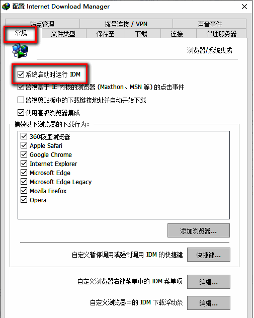 2、在打开的窗口界面中,点击上方中的"常规"选项卡,接着将下方中的"系统启动时运行IDM"小方框勾选上。