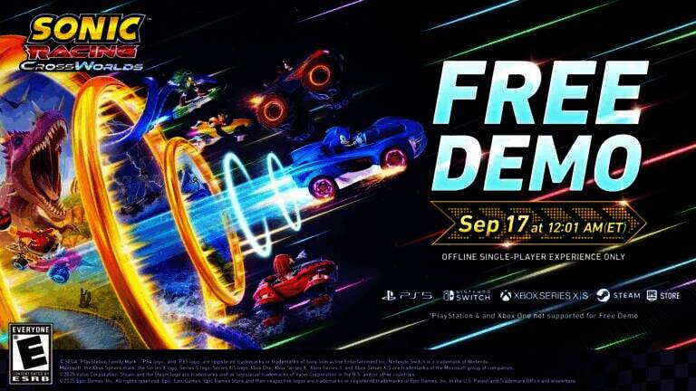 近日,世嘉宣布,《索尼克赛车:交叉世界》单人试玩版将于北京时间9月17日12点,正式上线PlayStation 5、Xbox Series、Switch以及Steam和Epic商店平台。值得注意的是,该试玩版将不登陆PlayStation 4或Xbox One平台。感兴趣的玩家可以去尝试一下。