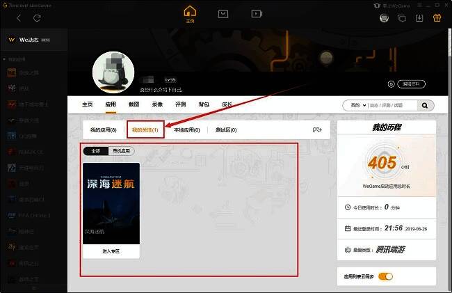 1、双击进入软件,找到自己喜欢的右击打开,接着点击游戏图标右侧的"关注动态"进行点击。