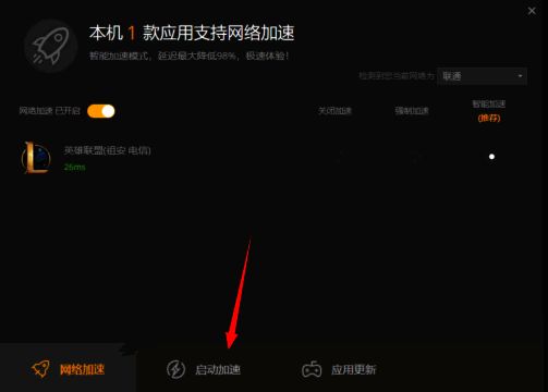2、在打开的窗口界面中,点击下方中的"启动加速"选项卡。