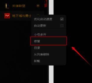 4、在游戏列表中,右击该游戏,选择选项列表中的"修复"。