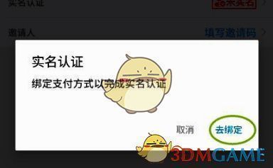 4、弹出窗口点击去绑定,绑定完成即可实名认证。