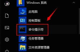 1、点击左下角任务栏中的开始,选择菜单列表中的"命令提示符"。