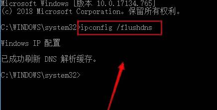 3、进入命令提示符窗口后,输入"ipconfig /flushdns"命令,回车。