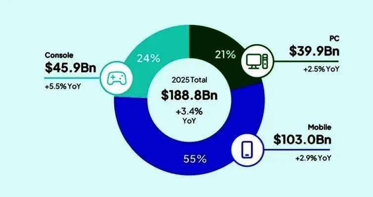 然而,根据Newzoo最新发布的《全球游戏市场报告》,2025年主机市场将在收入增长方面超过PC,成为行业增长的主要驱动力。移动游戏仍然以最高的可及性保持收入领先。