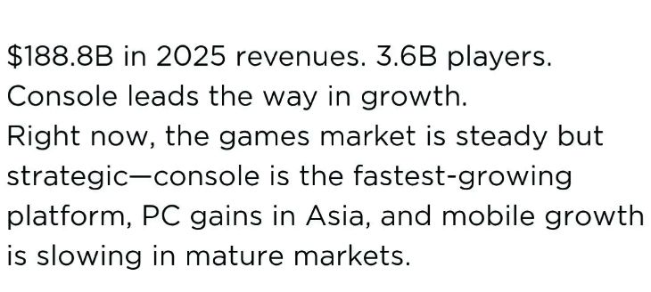 值得注意的是,主机市场的强劲增长趋势仍有望延续,尤其是在《GTA 6》首发仅登陆主机平台的背景下。