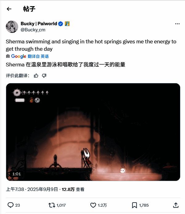 不少粉丝表达了对谢尔玛的喜爱,其中包括《幻兽帕鲁》的开发者Bucky,他表示:“谢尔玛在温泉中游泳和唱歌的样子,让我每天都充满能量。”