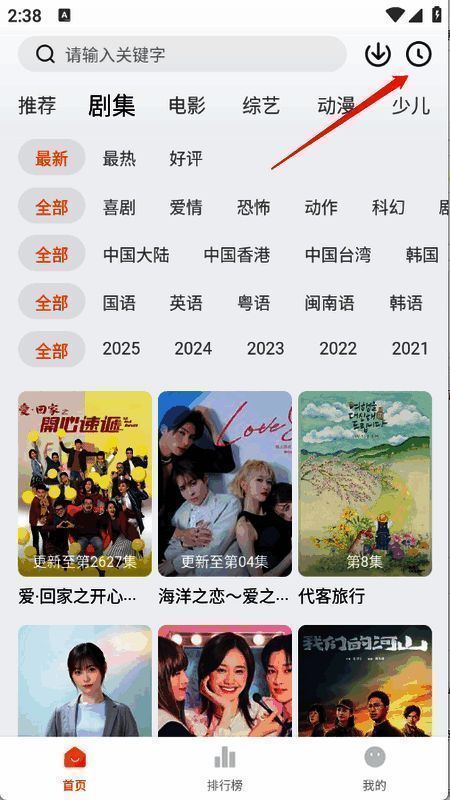 1、进入到app首页,点击右上角的历史。
