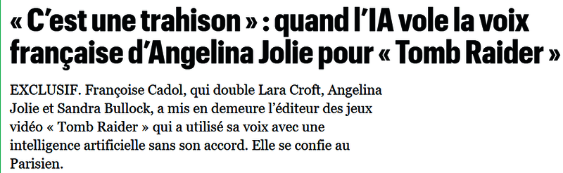 日前据外媒报道,《古墓丽影》系列女主角劳拉法语配音演员Françoise Cadol已经起诉游戏发行商Aspyr,称其在《古墓丽影 IV-VI 重制版》中未经授权擅自使用AI生成自己的声音侵犯权利。