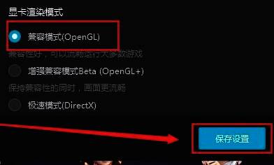 4、最后将"显卡渲染模式"设置为"兼容模式",随后点击"保存设置",并将软件重新启动就可以了。