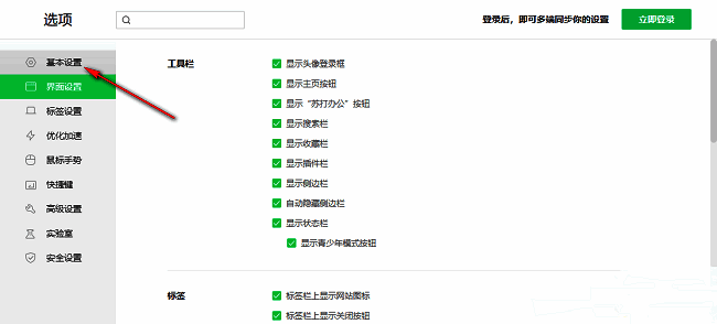 3、在打开的窗口界面中,点击左侧栏中的"基本设置"选项。