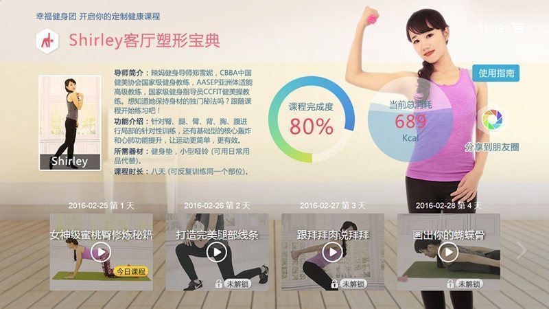 在最新v4.4.2版本中,《幸福健身团 TV版》带来了焕然一新的UI界面,操作更加直观便捷。同时新增了私人教练功能,用户可享受一对一专属健身与饮食指导,真正实现科学化、个性化的家庭健身体验。