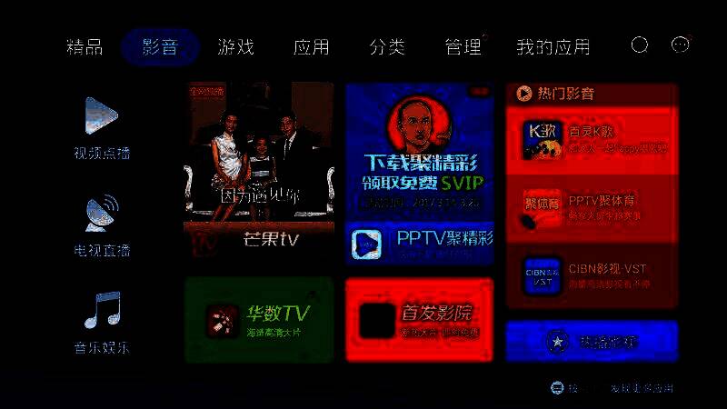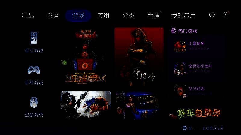 该平台涵盖主流直播频道如CCTV全系列及各大卫视,支持高清流畅点播服务,覆盖爱奇艺、优酷、芒果TV等主流平台资源。音乐与游戏板块同样丰富多样,QQ音乐、网易云音乐等带来沉浸式客厅娱乐体验,而休闲、棋牌、动作类游戏则满足全家人的娱乐需求。