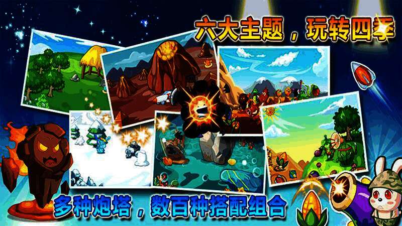 在这款游戏中,玩家的核心任务是通过合理布置36种不同类型的炮塔,构建强大的防御体系来击退敌人的进攻。每一张地图都充满挑战性,需要玩家不断调整战术与布局,才能有效抵御雨林狼和狐狸的袭击。