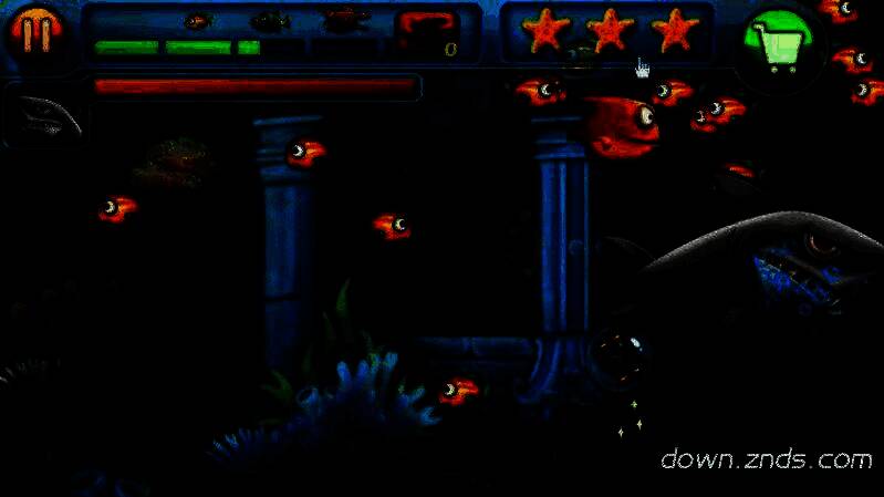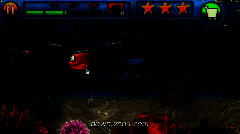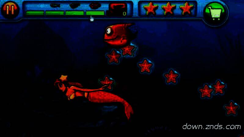 在游戏界面左上角设有绿色的成长进度条,每次成功进食都会推动其增长,而一旦被大鱼攻击则会下降。右侧的三颗星星代表当前关卡的评价标准,受到攻击会导致星星破损,影响最终评分。评分越高,美人鱼给予的奖励也越丰厚。