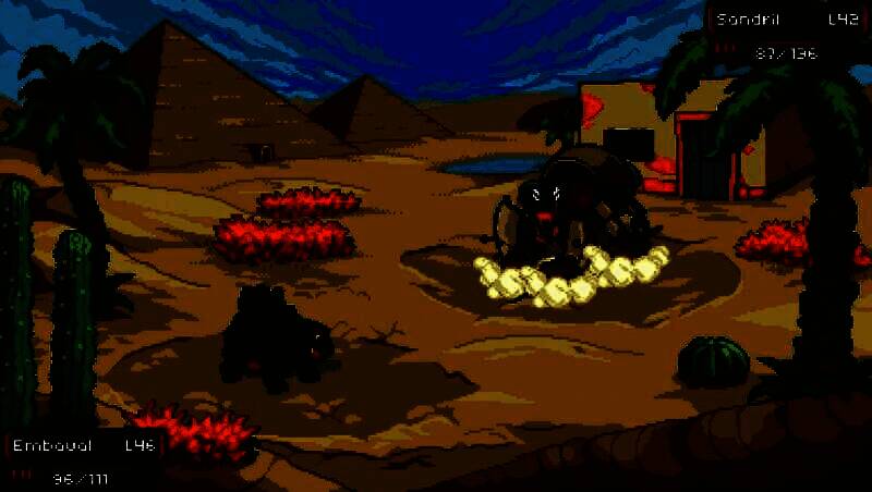 游戏采用现代化像素美术风格,在保留复古情怀的同时也实现了精细的动画表现。无论是技能特效还是环境互动,每一处细节都经过精心打磨。场景涵盖茂密森林、炽热沙漠及冰雪洞穴等多种生态,色彩饱满且层次分明,营造出一个奇幻而真实的世界。配乐方面则由知名作曲家Davi Vasc操刀,创作出50余首灵感源自经典JRPG的曲目,进一步增强了战斗与探索的沉浸感。