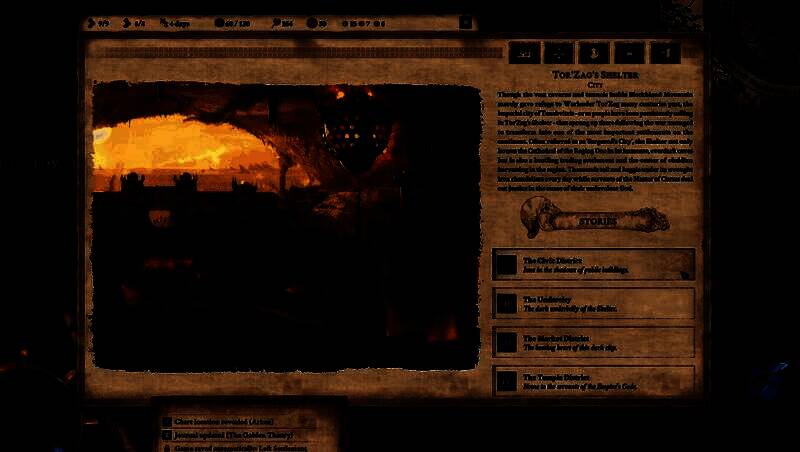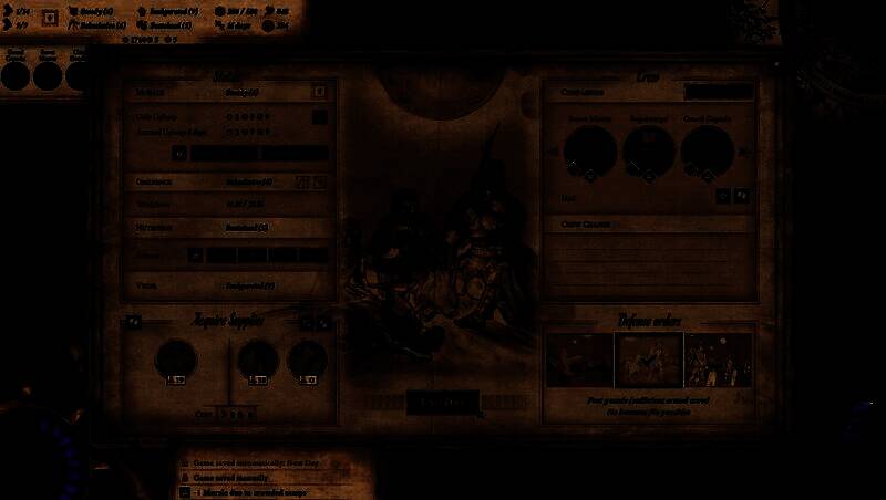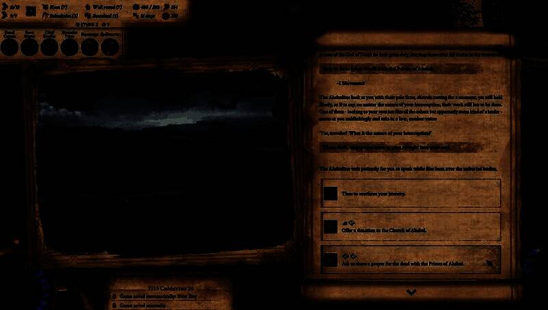 在视觉呈现方面,游戏采用了精美的手绘美术风格,地图与场景均以黑暗奇幻基调为主,荒原、废墟与异象通过细腻笔触描绘,增强了沉浸感。界面设计针对高分辨率优化,资源管理、战斗指令等操作布局清晰直观。尽管文本密集的叙事方式更注重内容深度而非炫目特效,但整体画风依旧保持高度统一与艺术性。