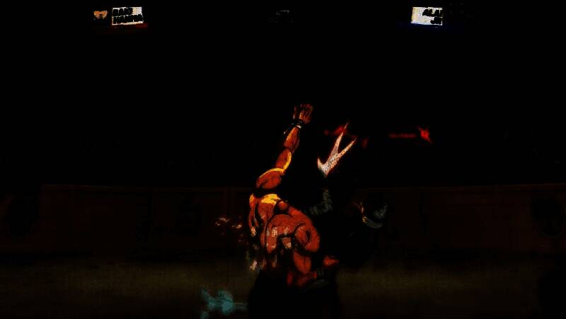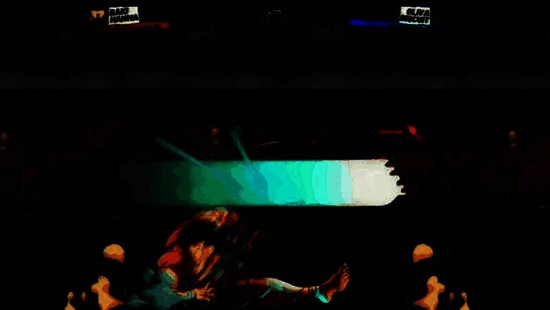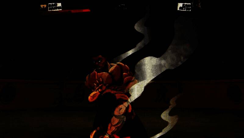 游戏在视觉表现上完美融合动态漫画风格与暴力美学,角色肌肉线条夸张有力,战斗中伴随汗水飞溅、血迹四溅与衣物破损等细节特效,增强临场感。每当必杀技发动时,画面会切换至黑白漫画分镜模式,并配合慢镜头与粒子特效,再现原作经典名场面。此外,X光骨骼透视特写不仅强化打击反馈,也进一步凸显了《刃牙》系列对肉体极限的极致刻画。