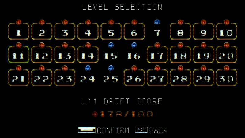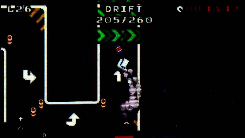 漂移日画面表现 游戏采用俯视角像素风画面,以低多边形建模和饱和色调还原经典街机视觉风格。赛道色彩鲜明,车辆漂移时伴随动态烟尘特效,增强动作反馈感。音效设计融合电子合成器音乐与轮胎摩擦声,进一步强化90年代街机厅的沉浸氛围。虽无写实画质,但风格化表现与玩法高度统一,赋予游戏独特的怀旧魅力。