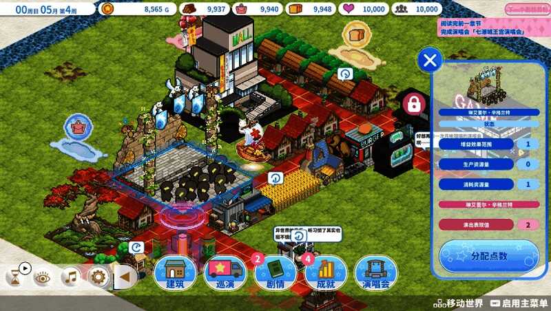游戏最吸引人的地方在于“城镇建设”与“演唱会节奏玩法”的深度联动。玩家需亲手规划道路、建造练习室、粉丝广场等设施,通过人气值与资金的积累逐步扩展圣地规模。而每一次成功的演唱会迷你游戏不仅能提升偶像的歌唱、舞蹈能力,还能直接带动粉丝数量增长,进而反哺圣地繁荣,形成良性循环。这种“粉丝数↑→繁荣度↑→偶像变强↑”的机制设计,让玩家每一步决策都充满意义。