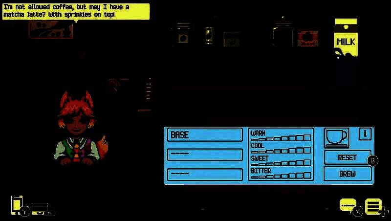 本作延续系列经典的像素美术风格,但在细节表现上全面升级。咖啡吧台上的虹吸壶、手冲壶、磨豆机等器具刻画精致,窗外流动的JR山手线电车与霓虹灯牌生动还原东京都市节奏。角色设计融合传统与现代:河童身着羽织与公文包,幽灵少女半透明飘浮,衣袂轻扬。动态效果也大幅提升——奶泡缓缓注入咖啡的流动感、雨夜中灯笼在水洼的光影折射,均增强了场景的沉浸体验,让玩家仿佛置身于那个温暖又略带忧伤的东京角落。