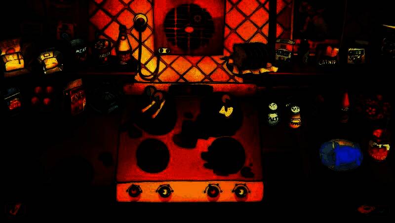 游戏采用独特的复古手绘卡通美术风格,角色设计极具辨识度——死鱼眼的狐狸、甲壳闪亮的帮派虫族、神情忧郁的浣熊店主,共同构成一个荒诞又真实的世界。场景虽简约但细节丰富:咖啡馆可切换昼夜主题,斑驳墙面、隐藏武器与角落涂鸦无不暗示其双重身份。UI设计简洁直观,食材比例实时可视化,操作反馈流畅自然。更值得一提的是,游戏支持“彩色”与“五彩斑斓黑”双模式切换,后者以全黑配色呈现另类视觉风格,强化了作品阴郁与讽刺并存的独特气质。