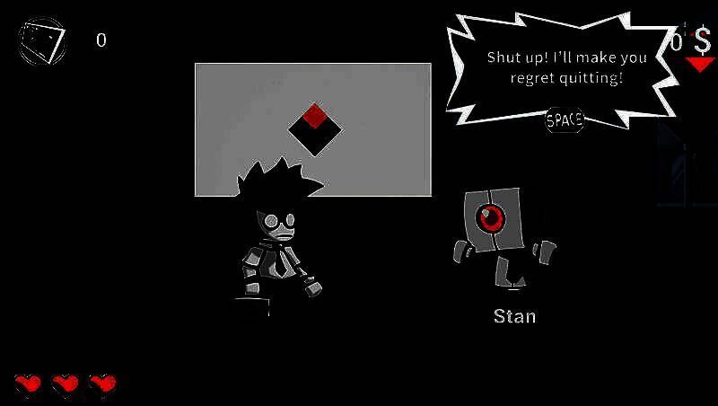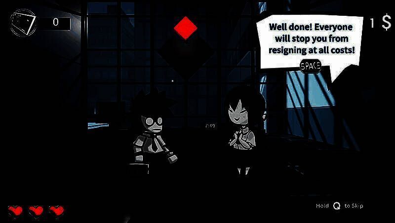 《即刻离职》采用极简黑白漫画风格,角色为三头身Q版造型,既保留辨识度又增强荒诞感。办公场景通过简洁线条勾勒出压抑氛围:堆积如山的文件、昏暗的走廊、冰冷的隔间,无不暗示职场异化。战斗特效极具风格化,处决动画采用分镜式漫画呈现,如“徒手撕碎监控机器人”“用辞职信封印主管”,充满戏剧张力。UI仅用红绿两色提示关键信息(如血量警报),在规避血腥表现的同时强化讽刺意味。尽管部分评测指出打击音效略显单一,但流畅的处决动画与强烈的视觉反馈有效弥补了手感短板。