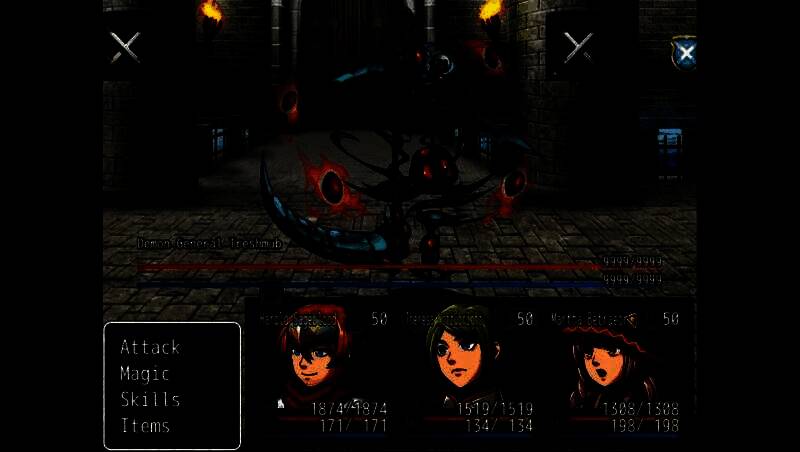 过于剧透的RPG画面表现 采用典型的RPG Maker素材组合,像素风地图与战斗场景简洁明了。过场以立绘对话为主,辅以动态特效增强演出张力(如关键反转时的屏幕震动)。虽无精细建模,但角色立绘表情丰富,配合语音增强代入感。