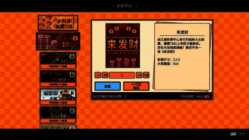 为满足不同玩家需求,《江城大赢家》提供双难度模式:“原生模式”还原残酷社会现实,玩家只能通过“大赢家之战”实现阶层跃迁,失败即永久降级;“幸运模式”则增加彩票中奖概率,提供更轻松的上升通道。无论你是策略高手还是剧情爱好者,都能找到属于自己的游戏节奏。结合丰富的结局分支与隐藏事件,游戏鼓励多次重玩,探索所有命运可能性。