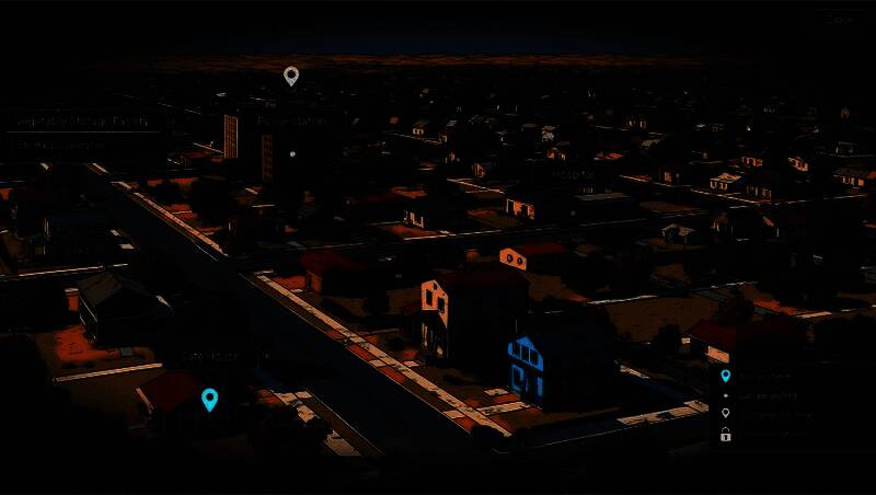 游戏设定在虚构小镇罗斯兰,还原1980年代美国中部城镇风貌。玩家可自由穿梭于警察局、医院、图书馆、加油站等标志性地点,每个场景均藏有关键线索或隐藏对话。非线性探索机制鼓励多角度调查,环境细节与NPC行为随剧情推进动态变化,增强代入感与重玩价值。