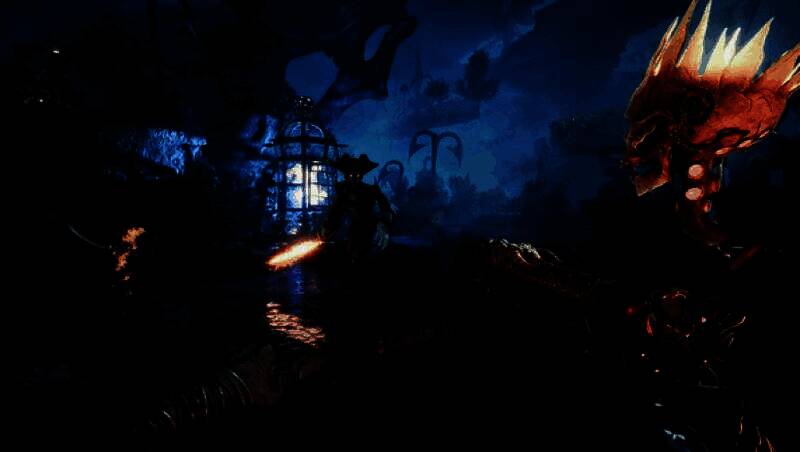 游戏采用高速第一人称近战系统,支持剑、双枪与钩索三位一体的连招组合。玩家可在冲刺中切换武器,利用环境进行空中钩荡突袭。头骨更可作为投掷武器或临时引爆装置,实现战术级打击。据开发团队透露,战斗帧数响应精度达60fps锁定,打击感经《只狼》前动作设计师顾问优化,确保每一击都具备强烈反馈。