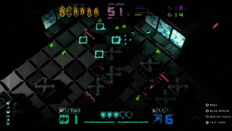 游戏创新性地结合实时操作与回合推进机制,玩家在战斗区需即时操控[dice Rover]闪避攻击、精准输出,同时每轮行动后局势动态演变。随着更多威胁物体不断生成,滞留风险指数级上升,考验玩家的节奏掌控与临场决策力。