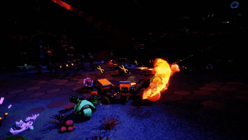 游戏打破传统塔防边界,将基地建设、单位部署与亲临战场的英雄操控完美结合。玩家不仅能从战略视角指挥机器人部队、部署防御塔与载具,还能随时切换至动作模式,亲自操控奇普或爪兹突入敌阵,释放技能、收集资源、摧毁敌方核心。每场战斗都需兼顾宏观调度与微观操作,带来前所未有的策略沉浸感。