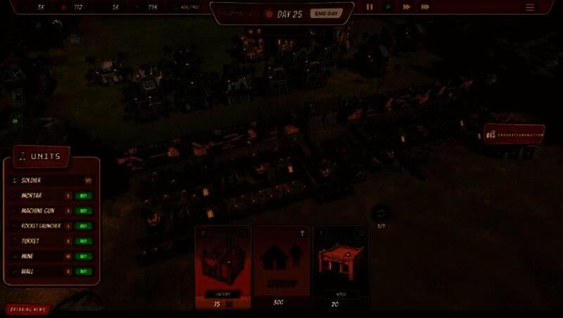 游戏中设有五种相互关联的核心资源:建筑材料、弹药、科研点、人口与电力,构成复杂的经济系统。玩家必须精准分配资源流向,例如工厂产出建材用于扩建,兵营依赖住宅提供的人口训练士兵,而实验室则需持续投入科研点以解锁跨局升级。值得注意的是,所有资源需手动点击图标收集,强化了操作参与感与时机把控的重要性。