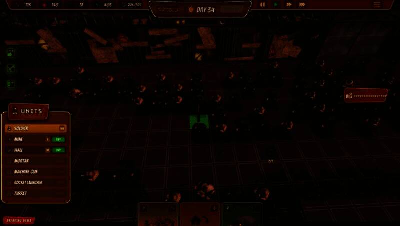 游戏创新性地将塔防、卡牌强化与Roguelite元素融合,形成昼夜交替的核心机制。白天为发展期,玩家需高效管理空间与资源,通过合并建筑提升等级;夜晚则进入高强度防御阶段,面对波次递增的僵尸进攻。每一轮游戏的地图布局、敌人类型与卡牌掉落均随机生成,迫使玩家不断调整战术策略,显著提升可玩深度与挑战性。
