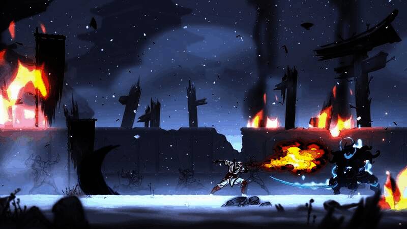 全手绘美术风格成就本作视觉标杆——风雪栈道、机械基地、燃烧村落等场景色彩浓郁、细节丰富,动画帧数饱满流畅,配合动态镜头与粒子特效,营造出如动画剧集般的叙事质感。尽管部分角色立绘风格前卫引发讨论,整体仍被业界一致评为“2025年最具艺术表现力的2D动作游戏”。