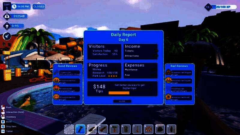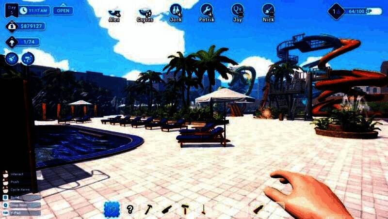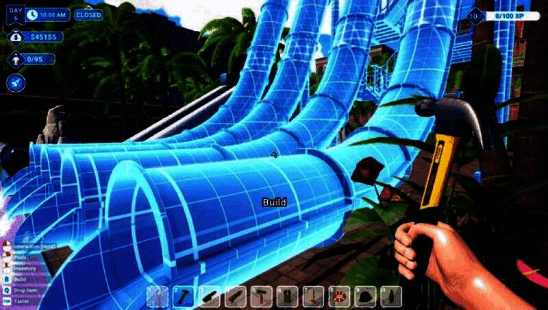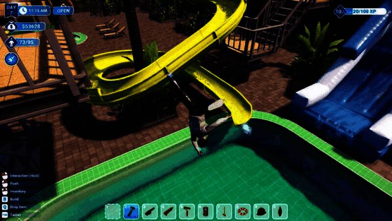 在《Waterpark Simulator》中,你不仅是设计师,更是执行者。初期需亲力亲为:售票、供餐、清理泳池粪便、抢救溺水者、维修破损设施——真实还原初创乐园的混乱日常。随着收入增长,可逐步雇佣员工,将你从琐事中解放,专注于园区扩建与创意升级。通过第一人称视角深入每一个操作环节,体验从“一人军团”到乐园大亨的成长历程。