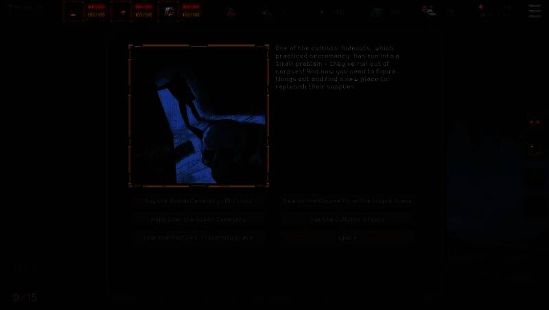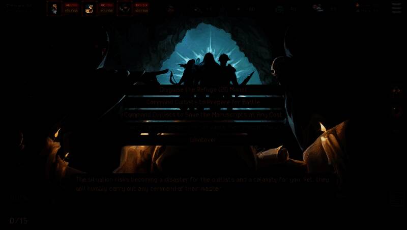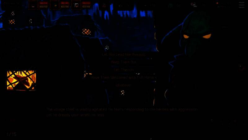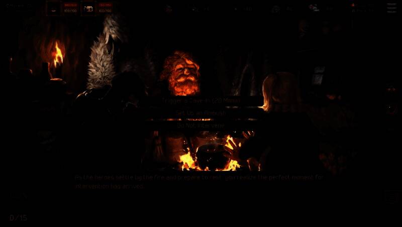 采用3D立体建模呈现地下城结构,整体美术风格简洁冷峻,突出策略信息的可读性。核心交互依赖文字叙述,关键事件辅以静态插画增强沉浸感,如英雄对决、派系冲突等场景均有专属画面。资源栏、忠诚度条与英雄推进进度一目了然,有效降低纯文本游戏的认知负担,提升决策效率。